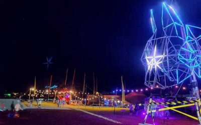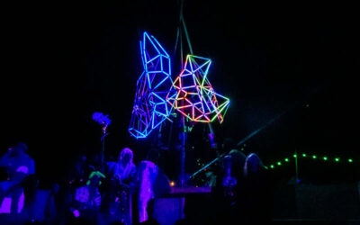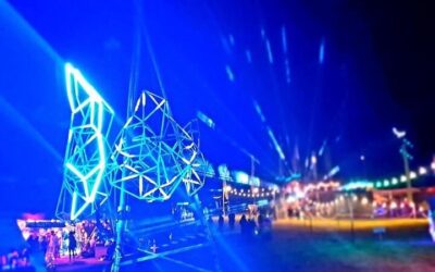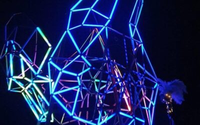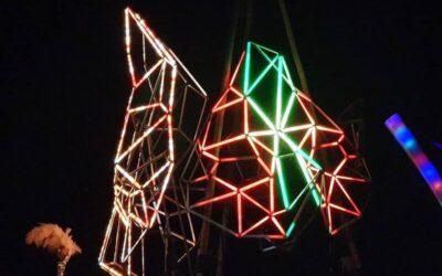 Following the festival theme of ‘pest control’ myself and two others built three 7ft tall metal frames of animal heads. They were then wired with remote control LEDs and had a harness fitted. They were used in a parade that formed the festival’s official opening. The concept was devised by the head of the art team.